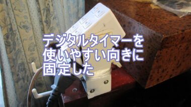 はじめに:食卓の足元暖房器具にタイマースイッチを取り付けました。タイマースイッチを前向き斜めに取り付けて使いやすくするために工夫したことを紹介します。タイマースイッチのようすまず食卓の脇の袖棚(そでだな:造語、袖机が一般的)に取り付けたタイマースイッチのようすを紹介します。スイッチがコの字型の支えによって斜めに固定されています。スイッチの右下の電源コードから電源が供給され、スイッチの左下のタップで...
